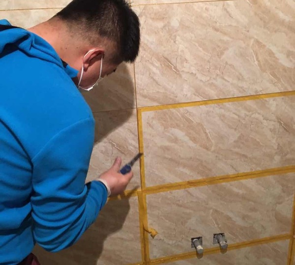 居住在山西临汾的谭先生今年2月9日在凡东尼官网购买6支310ml馏金色全瓷胶,谭先生第一次使用美缝剂,通过视频学习施工方法,利用多余瓷砖进行试验。